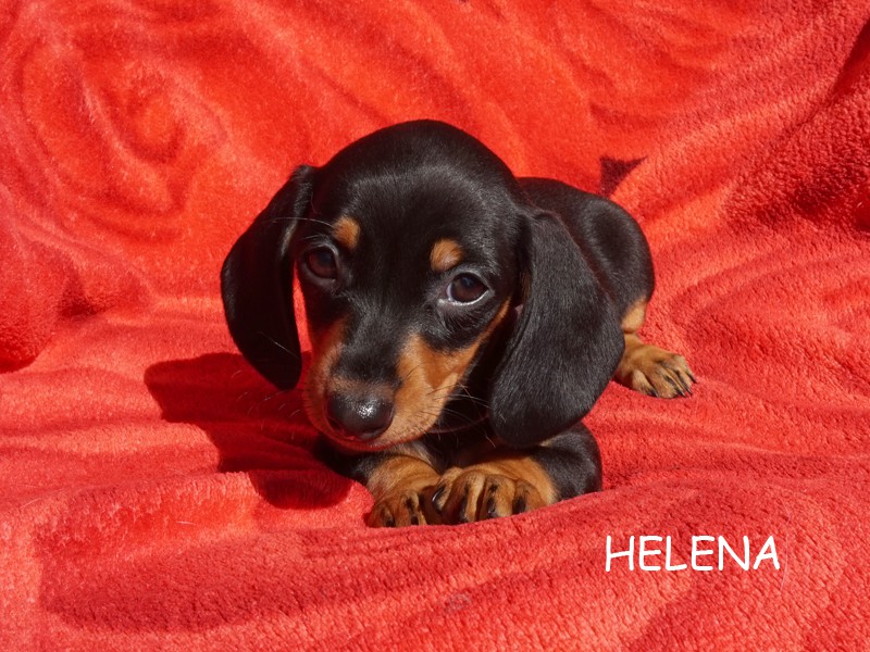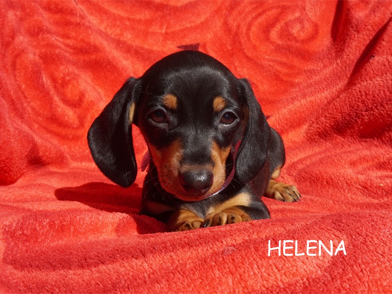Mama: Jamnik, krótkowłosy standard, czarna podpalana, JOSEPHINE Brylujące Pieski (waga ok 7,5kg).