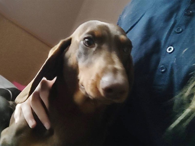 Tata: Jamnik, krótkowłosy miniaturka, czekoladowy podpalany, MICHAŁEK (waga ok 4,5kg).
