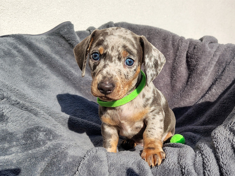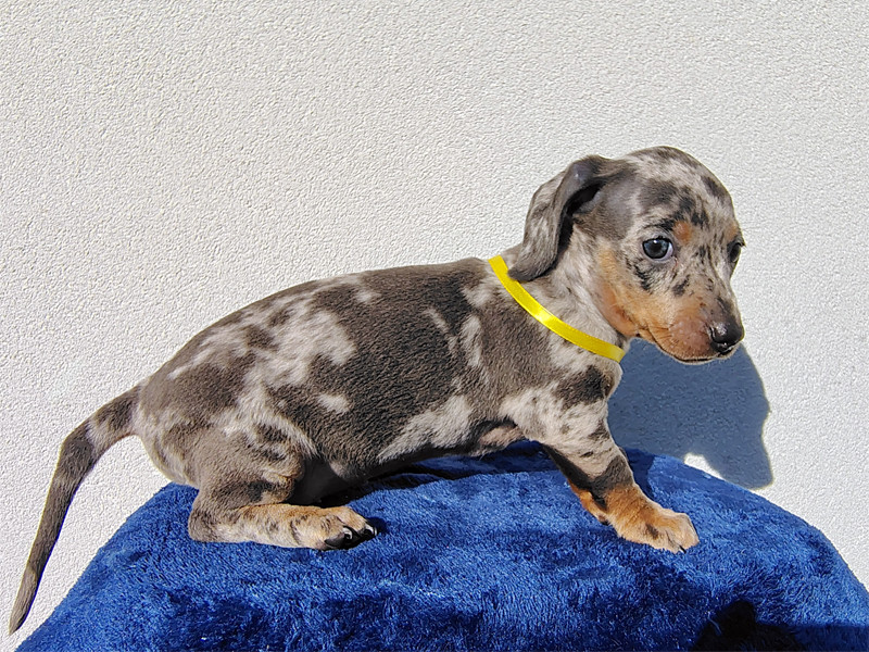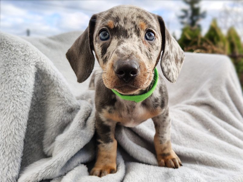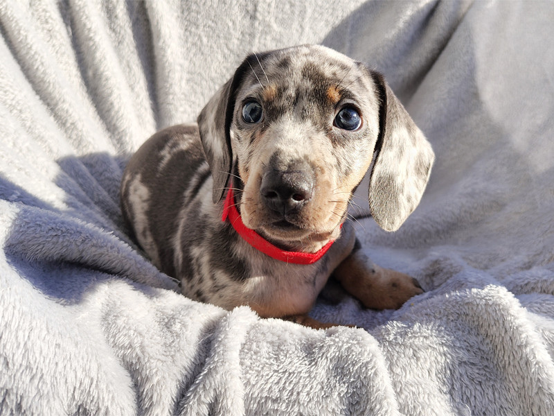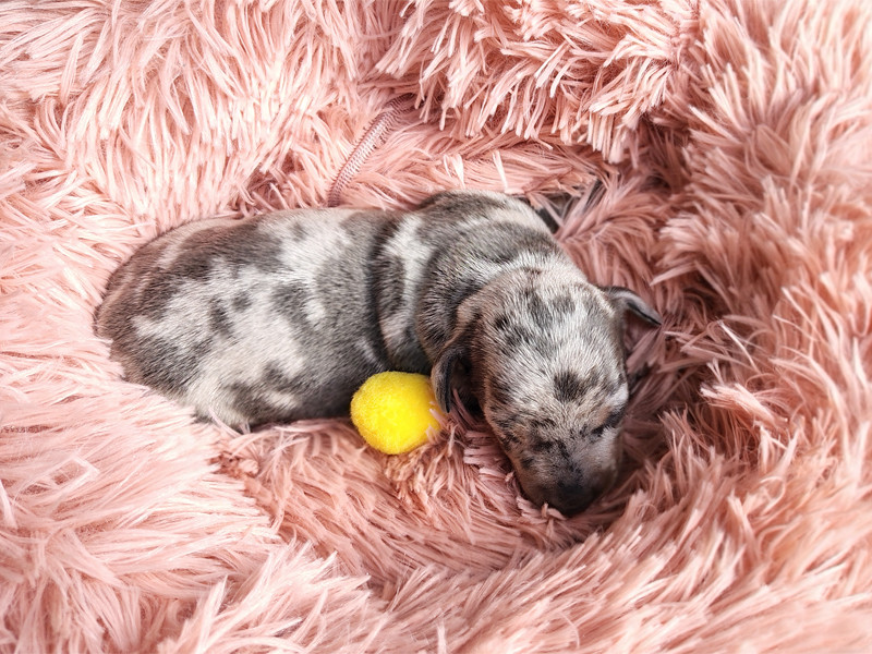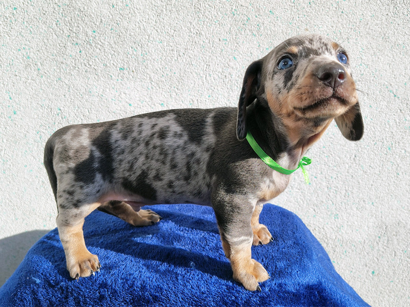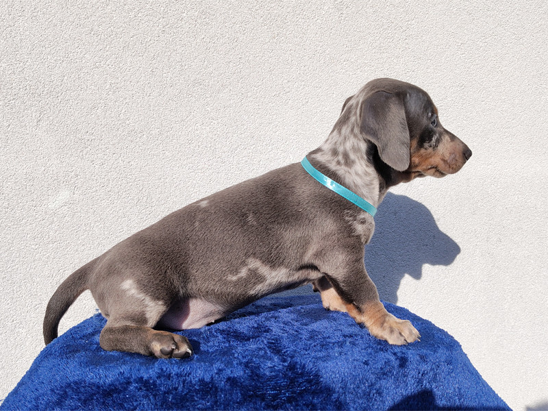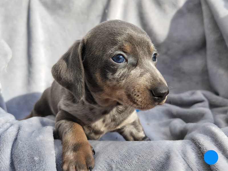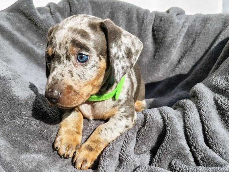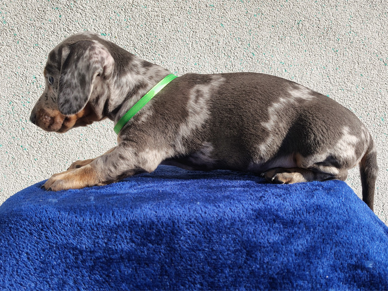(Umaszczenie Blue merle, szczenięta mają plamki niebiesko-niebieskie (czyli potocznie szaro-szare), szczenięta nie mają czarnych, brązowych, ani czekoladowych plamek / marmurków/ ciapek *zaznaczamy to, bo aparat wariuje.)