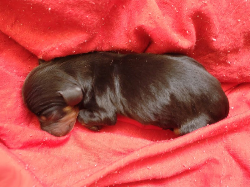 Trzeci Chłopiec - samiec, jamnik, czarny podpalany, urodził się godzinie 19:43. (Znalazł nowy dom w okolicach Krakowa).