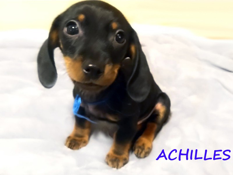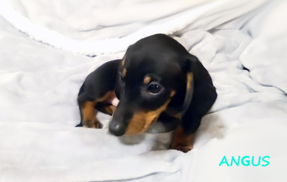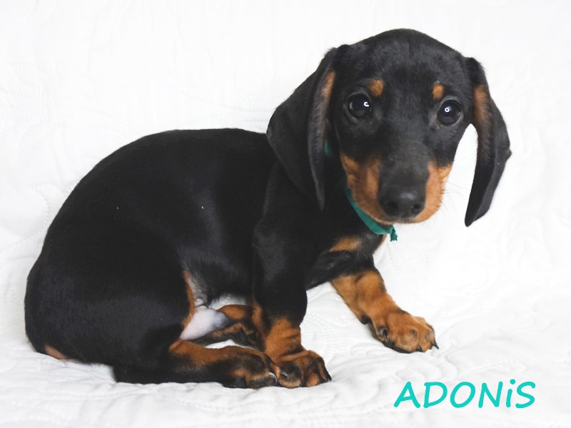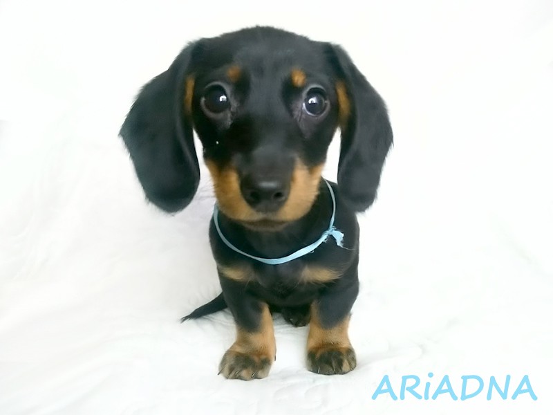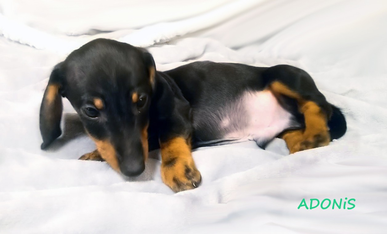 Urodzony o godzinie 6:49. Pierwszy samiec z miotu. Przywódczy piękny samiec. Jamnik czarny podpalany. (Znalazł nowy dom w okolicach Wieliczki.)