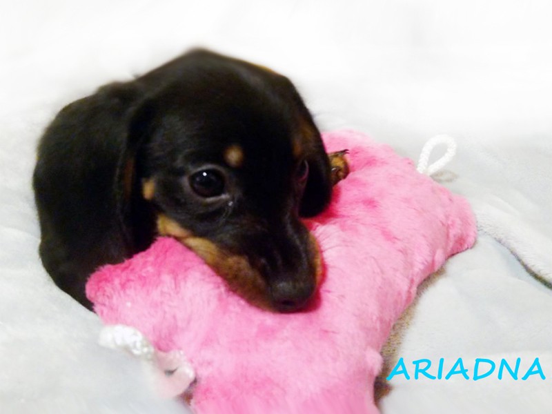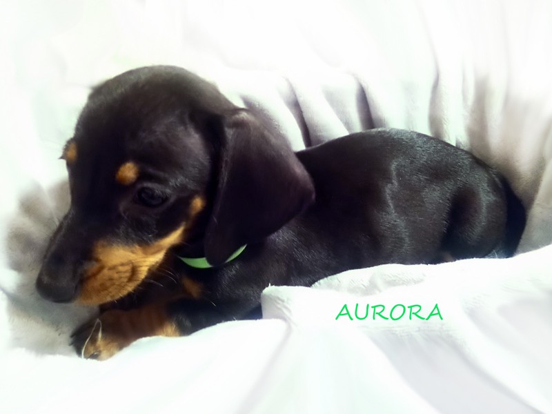 Urodzona o godzinie 6:09. Pierwsza suczka z miotu. Aurora bogini świtu. :) Jamniczka czarna podpalana. (Znalazła nowy dom w Szkocji, w Livingston).