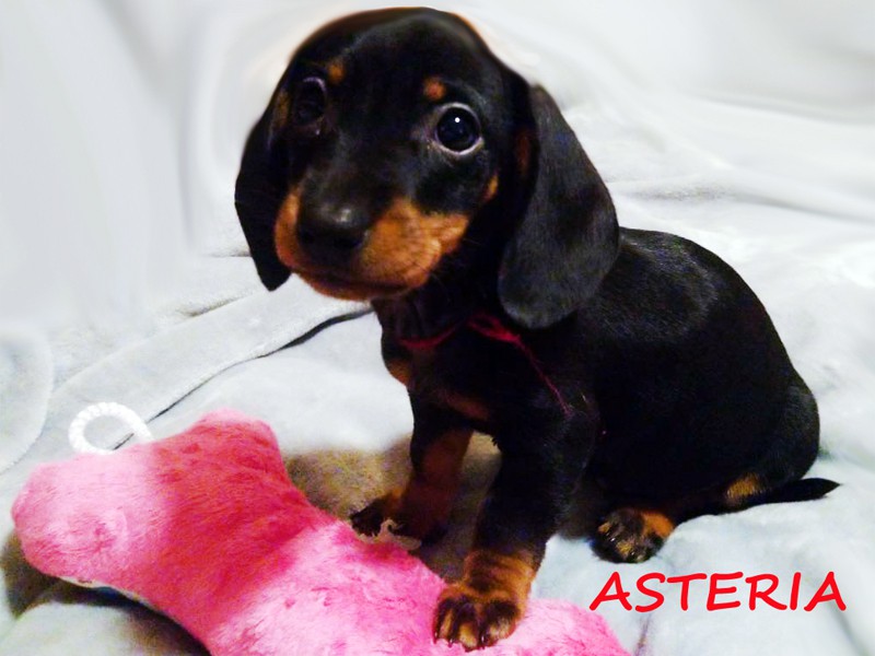 Przyszła na świat o godzinie 8:17. Suczka Asteria bogini gwiazd. Bo to taka gwiazdeczka :) Jamniczka czarna podpalana. (Znalazła nowy domek w Krakowie).