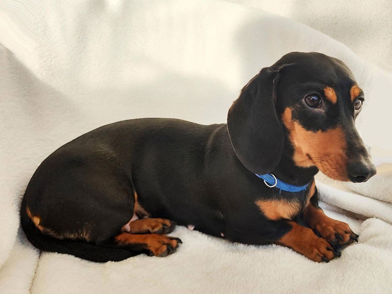 Mama: Jamnik, krótkowłosy standard, maść: czarna podpalana, VIKTORIA Brylujące Pieski (waga ok 6kg).