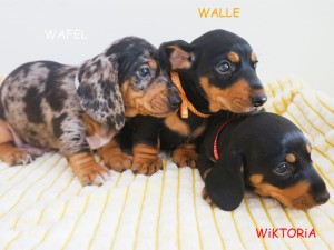 Jamniczki: suczka czarna podpalana, samiec czarny podpalany i samiec merle podpalany. :)